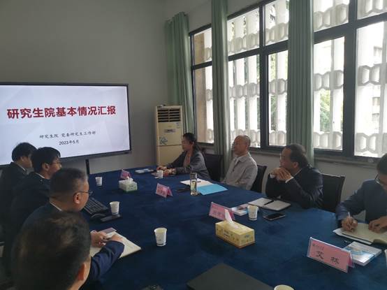 2023.05.125月11日上午,校长刘勇胜来研究生院开展工作调研。发展规划处白宗新处长、衡艳林副处长及校办艾林同志陪同调研。研究生院院长(党委研究生工作部部长)赵辉、研究生院副院长曾威、余劲东及研究生院副院长(党委研究生工作部副部长)黄龙参加调研座谈会。 会上,赵辉院长详细汇报了学校研究生教育的发展历史与现状,近两年学校研究生教育的“六新”探索和成效,以及研究生院当前面临的困难和问题。听取完汇报,刘勇胜校长对学校...