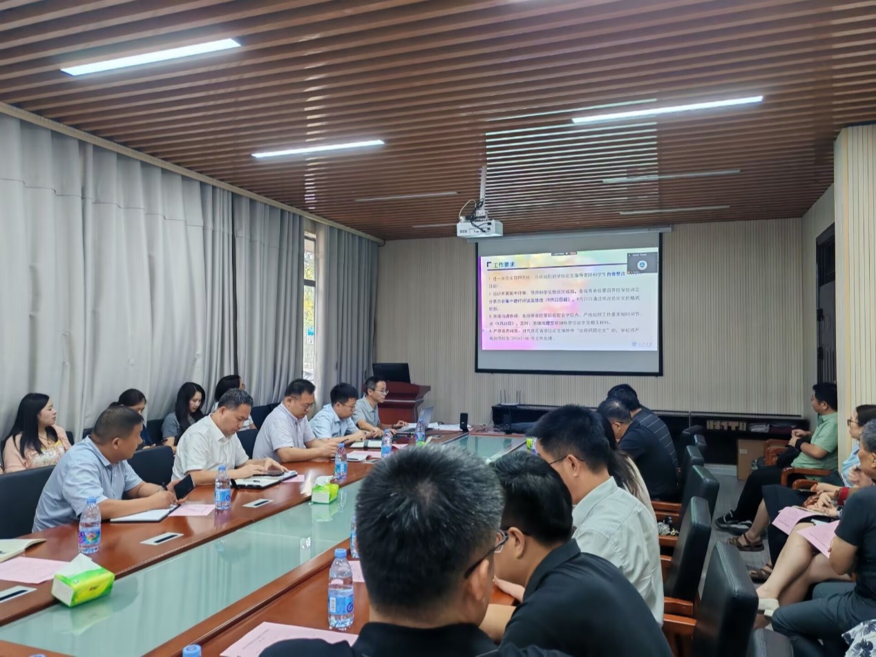 9月17日下午2:00,研究生院在行政楼110会议室组织召开了研究生学位论文质量提升工作会,副校长江厚顺、各学院分管研究生教育副院长及相关同志出席会议。会议由研究院院长方正武主持,以线下线上相结合的方式进行。会上,研究生院副院长袁海山结合学位论文抽检概况、我校近几年学位论文抽检情况、论文抽检结果对各学科、学院的影响、往年抽检评议“不合格论文”专家评语实例及2025年省学位办抽检学位论文工作要求五个方面在会上...