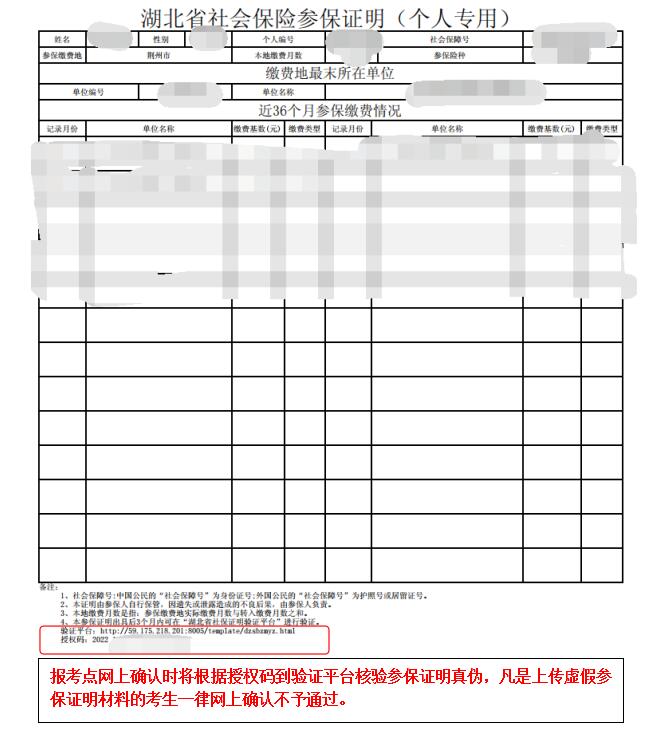 2. 此操作指南仅供2023年全国硕士研究生招生考试选择在长江大学(考点代码:4211)报考点、在荆州缴纳了近3个月社保的异地报考考生网上打印《湖北省社保证明(个人专用)》参考使用,对应考生网上打印后为个人的《湖北省社保证明(个人专用)》PDF格式文件,请将对应PDF文件内容完整截图后上传到网上确认系统,如图: