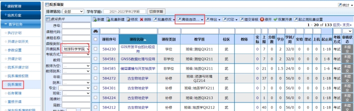 ①开课单位,开设的课程按照校区进行班级合班,相同学时、学分、同一层次的全日制、非全日制的课程可以进行合班。