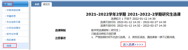 1、全校2021级研究生进行第2学期的正常选课。