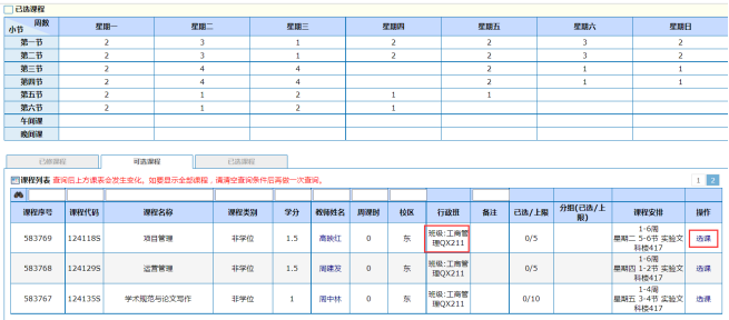 2、没在规定的时间内进行选课者,无法记录考勤,无法录入成绩由学生本人负责。