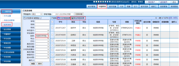 1、开放权限。待学位办提供开题结果后,开放中期考核审核权限。