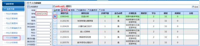 6、研究生个人培养计划一旦制定和审核通过,个人计划中的所有课程必须取得成绩,拿到学分。无成绩或成绩不合格的课程不能随意删除,必须参加重修和考核。