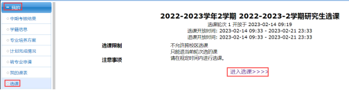 请各培养单位组织、指导各年级研究生以个人培养计划为依据,结合开课单位实际开课情况,完成2022-2023学年第2学期选课。现将具体事项通知如下: