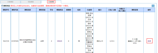 ⑷如果发生误选,可以在已选课程将误选课程进行退课。图八