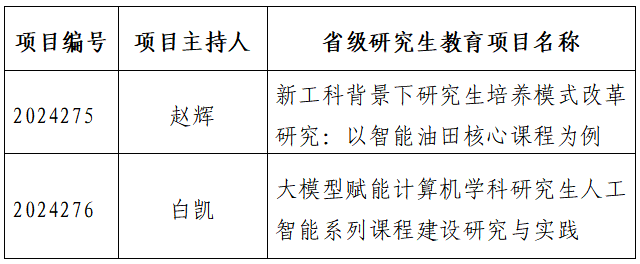 近日,省教育厅公布了《关于公布2024年湖北本科高校省级教学改革研究项目的通知》(鄂教高函〔2025〕1号),我校2项研究生教育项目正式获批省级立项,具体名单见下表。