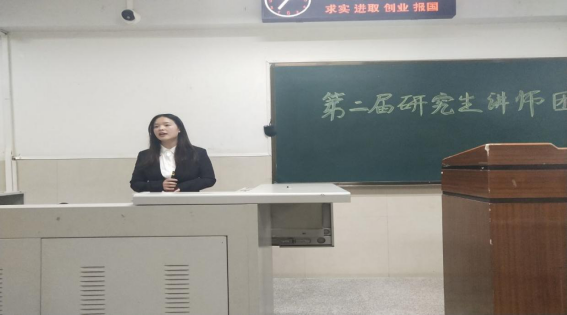 (通讯员 刘子彦 郭馨子)想青年之所想,讲青年之所讲。4月9日晚,长江大学第二届研究生讲师团在12教102开展专题宣讲活动。此次宣讲主题为“更好生态,更好生活,加强生态文明建设”,由马克思主义学院刘雪梅同学主讲。教育与体育学院100余名研究生参加宣讲活动。