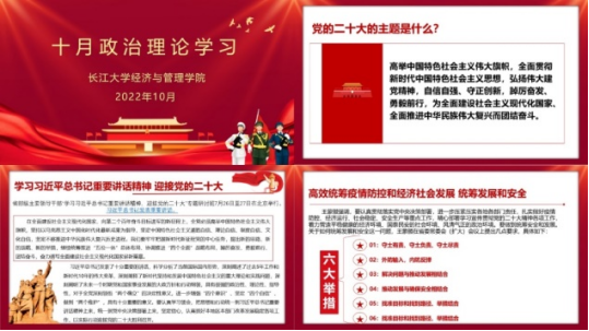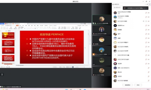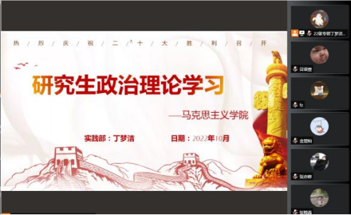 按照学习安排,各学院通过开展班级班会、观看新闻视频及线上、线下集中学习等多种形式开展了政治理论学习活动。马克思主义学院开展了线上研究生政治理论学习交流会同学们纷纷畅谈学习党的二十大报告原文的心得体会。经管学院以线上形式开展了十月政治理论学习活动暨疫情防控团会,同学们热烈讨论,纷纷表示对于党的二十大精神和学校疫情的防控政策有了更深刻的理解。法学院开展了政治理论学习线上主题班会,同学们踊跃发言,主动分享自己学习党的二十大精神的心得和感悟。