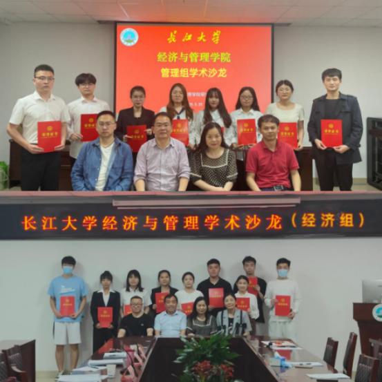 经济组研究生分别汇报了“区域发展、企业规模对工业企业绿色技术创新效率的影响研究”“长江中游城市群产业协同集聚与科技创新耦合的经济增长效应”“长江经济带人才共享的收入效应研究”“农业服务化能降低农业碳排放强度吗?”“劳动力流动对居民家庭消费的影响”“数字普惠金融、农户创业与乡村产业结构升级”“数字普惠金融能促进城乡融合吗?——基于中介效应和门槛模型的检验”等11项成果。管理组研究生分别汇报了数字化转型与企业全要素生产率”“社会责任视角下CEO权利对企业绿色创新的影响研究”“经济增长目标,资源错配与产业结构升级”“企业金融化,环境规制与绿色创新”“双碳背景下企业气候信息披露研究——以宝钢股份为例”等6项成果。