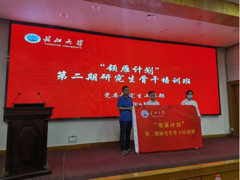 紧接着,校团委副书记秦良斌为本期研究生骨干培训班授旗。