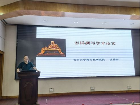开班仪式后,孟修祥教授为学员们带来以“怎样撰写学术论文”为主题的精彩第一讲。“论文到底该如何撰写?”他以自身经验为例,分享了研究生时期的自己是如何去写论文,在阅读论文时一定要带着问题去阅读,在阅读中发现问题。最后,孟教授勉励大家:做学问的过程中不仅是在撰写论文,也是在学习如何做人,如何思考。