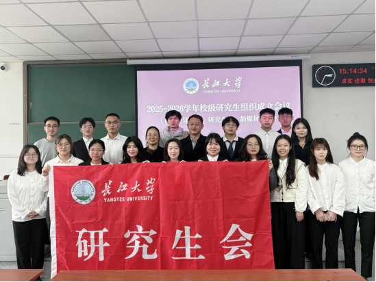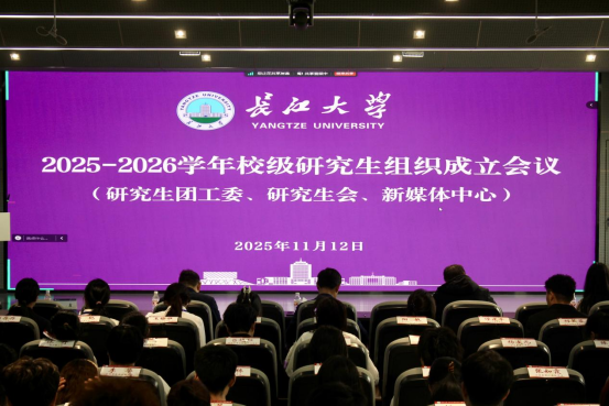 会议在庄严的国歌声中拉开帷幕。会议上,校团委副书记信晓阳老师宣读了《关于长江大学2025-2026学年校级研究生组织成员任命的决定》。