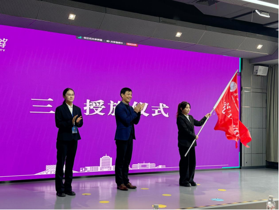 授旗仪式环节庄重而神圣。党委研究生工作部部长关辉老师依次为研究生团工委、研究生会、研究生新媒体中心授旗,飘扬的旗帜标志着引领研究生发展、服务研究生成长的接力棒正式交到了新一届成员手中。