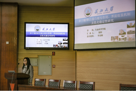 Bevictor伟德陈阳同学以《单宁酸/卵白蛋白相互作用、界面组装机制及乳化稳定性研究》为题,通过介绍单宁酸对卵白蛋白作为乳化剂在乳液体系中的影响,阐述了食品生物分子间的相互作用以及蛋白质作为乳化剂在食品中的应用。