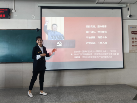 她以在庆祝中国共产党成立100周年大会上,习近平总书记精辟概括伟大建党精神的深刻内涵为主线,从中国共产党人的先进事迹出发深刻讲述了中国共产党的精神之源,阐明了伟大建党精神奠定了中国共产党精神谱系的根基。她强调,我们作为新时代的中国青年要以实现中华民族伟大复兴为己任,勇挑重担,负重前行,自觉承载革命先辈的希望,接过他们手中的接力棒,从百年党史中汲取养分和力量,弘扬伟大建党精神,燃烧青春,奉献祖国,永葆赤子心,薪火永相传。