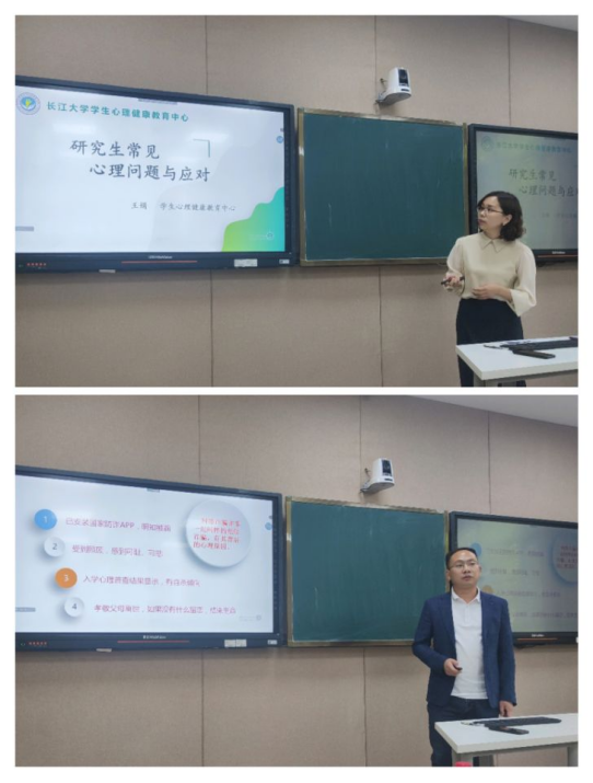 王娟老师就研究生适应与发展困扰、自伤与自杀以及如何对于高危人员的积极干预进行了介绍,分享了针对心理健康工作的相关研究成果。她就研究生心理健康问题识别以及危机事件应对进行了详细讲解。
