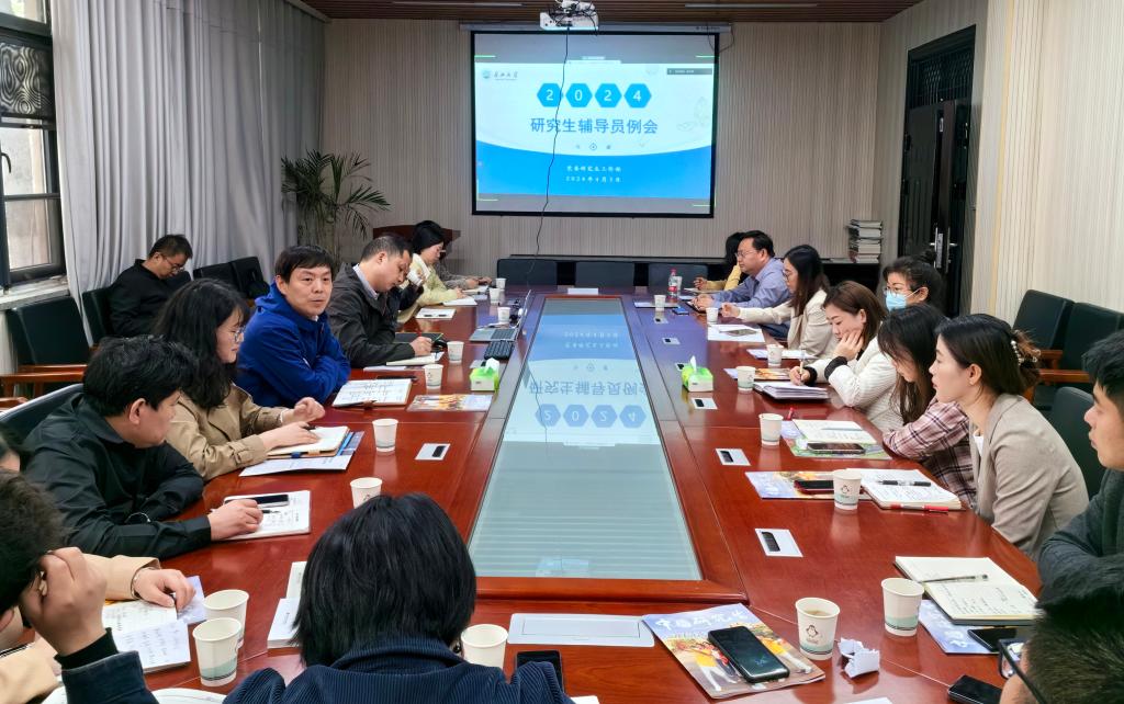 会上,彭文秀从清明节安全教育管理、“心•遇长大”谈心育人工作、“导师伴我行”征文活动以及研途领航铸魂育人方案等近期重点工作进行了汇报。史永波围绕研究生学科竞赛等工作对大家提出有关建议。