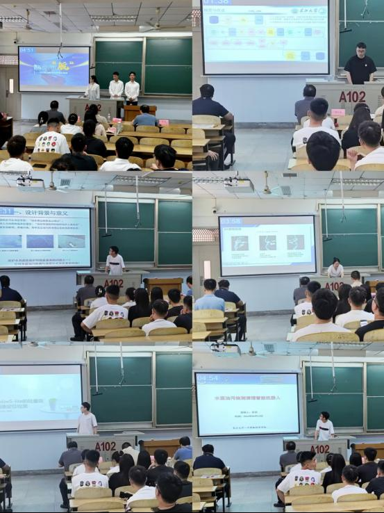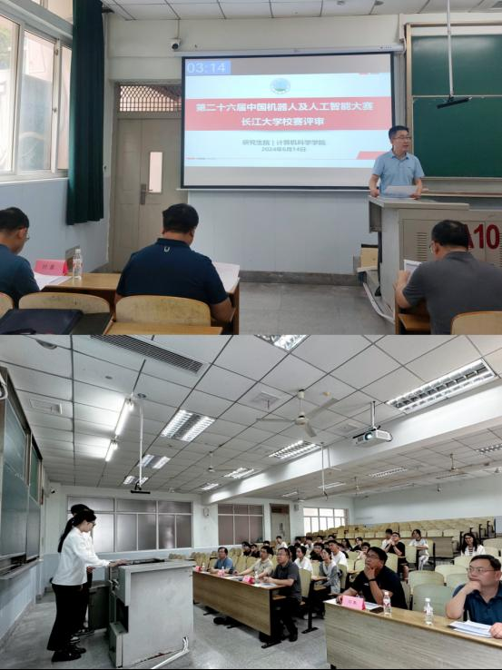 角逐智能领域,弘扬创新精神。为激励我校研究生参加科技创新赛竞赛,提高作品质量,在研究生院的支持下,6月14日14:00,13教102,计算机科学学院承办举行了第26届“中国研究生机器人及人工智能大赛”长江大学校赛。邀请机械学院刘少胡教授、电信学院周箩鱼副教授、计科学院赵鸣教授、白凯副教授以及付盈副教授担任赛事评委。