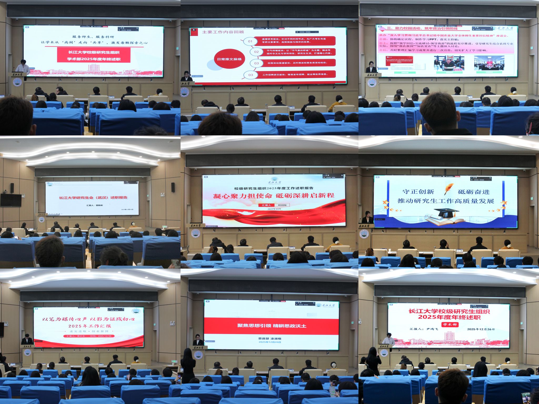 (通讯员 游楚莹 路梦媛/文 曹君萍 冯薇丹 沈阳阳/摄)为全面总结2025年度工作成效,加强组织建设、明晰发展方向,长江大学校级研究生组织于12月26日在东校区11教报告厅举行2025年度述职会议,武汉校区设分会场同步视频参会。