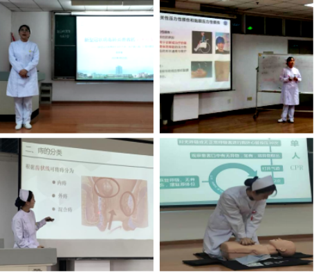 在比赛过程中每一位选手都给我们带来了不一样的授课风格和不一样的视听感受。其中,选手刘鸿飞通过有趣的肢体语言结合板书,使我们清晰地了解到不同痔的病因以及了解不同痔的区别;选手李樱子绘声绘色地为大家介绍了临床上血源性病原体职业暴露的危险因素以及如预防的方法,并呼吁大家一定要重视职业暴露。