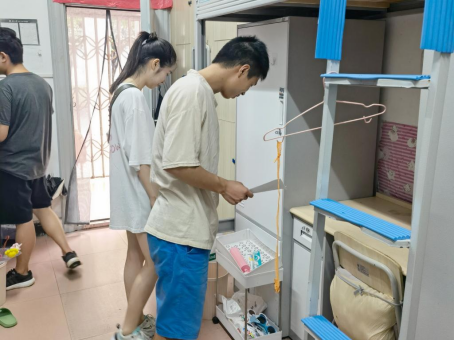在检查过程中,彭老师首先了解学生暑期在校和毕业生离校的状况,提醒研究生在暑假期间注意疫情防控、交通、人身、财产、防电信诈骗和饮食等安全。要求研究生做好疫情防控和安全防范,认真完成健康打卡,如实报送个人信息。如非科研需要不在学校逗留,按学校要求办理暑假离校或留校手续,提前报告导师和辅导员审批。同时,暑假期间寝室、自习室、实验室要做到人走断水断电,关好门窗,防止意外发生,禁止使用违规电器。妥善保管个人贵重物品,以免造成财产损失。