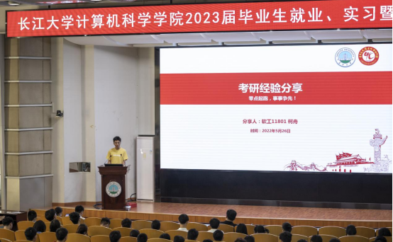 随后,考取长江大学硕士研究生的柯舟、熊彬和考取武汉大学硕士研究生的夏敏分别进行了考研经验交流。他们结合自身的考研复习经验,为立志考研的同学较为详实地分享了自身的备考经历。“长风破浪会有时,直挂云帆济沧海”,衷心祝愿各位考研学子成功上岸。