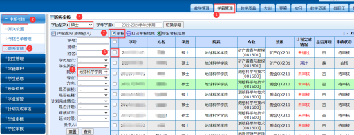 2、开通权限。培养办审核计划完成情况,导入开题结果。并开通审核权限。
