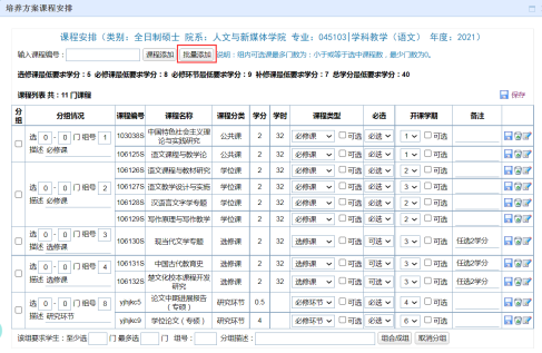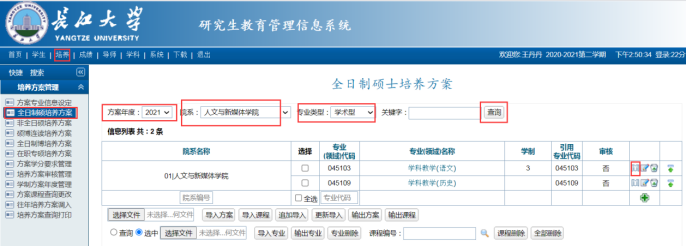 提醒1:全日制硕士录入完毕,有非全日制、硕博连读和博士招生专业的培养方案也需一并录入。
